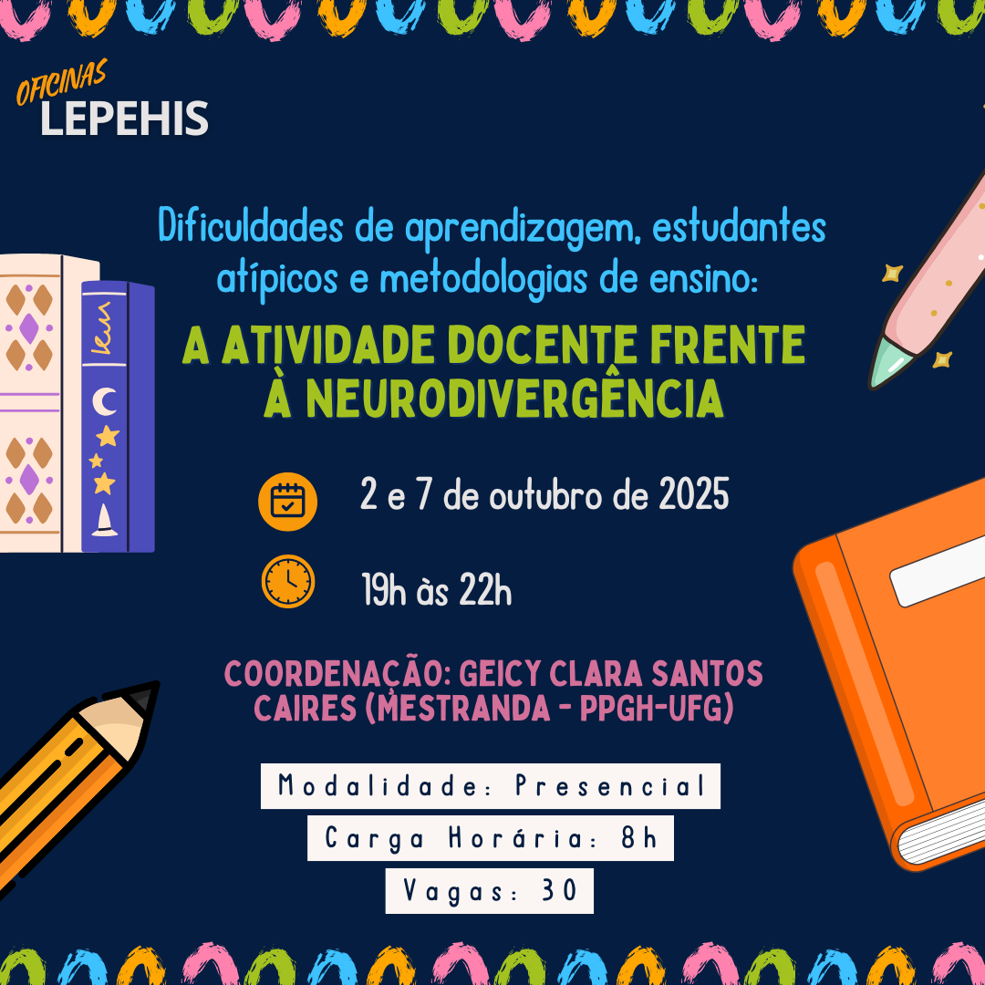 OFICINA LEPEHIS: Dificuldades de aprendizagem, estudantes atípicos e metodologias de ensino: a atividade docente frente à neurodivergência