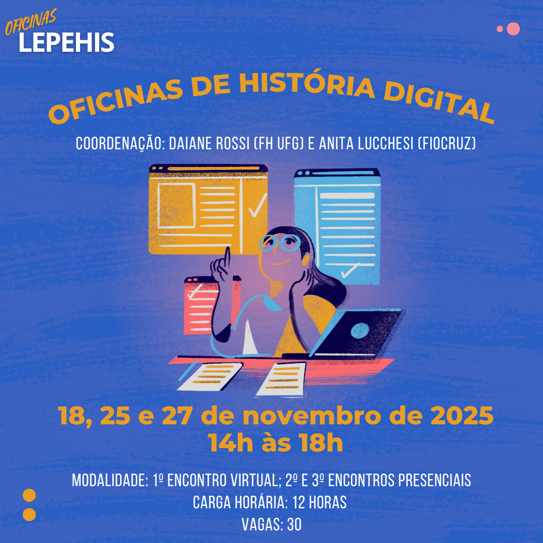 EMENTA: Oficina de gerenciamento bibliográfico a partir do Zotero; Oficina de Mapeamento de Literatura com Inteligência Artificial; Oficina de História Pública Digital.